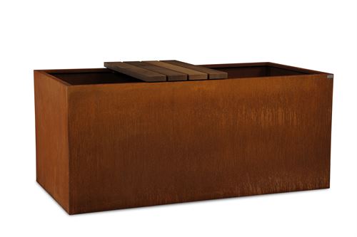 Die Aufbewahrungsbox 103710 ist eine puristische Gartenbox aus hochwertigem Cortenstahl, die durch ihre edelrostige Patina eine besonders warme und natürliche Ausstrahlung erhält. Die Box wird ohne Boden gefertigt und ist mit einem Deckel aus Holz-Ablagerost ausgestattet – ideal zur Belüftung und als praktische Ablagefläche. Perfekt zur stilvollen Aufbewahrung von Gartenzubehör, Werkzeug oder Kaminholz im Außenbereich.