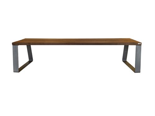 Die witterungsresistente Bankunterkonstruktion ist aufwendig von Hand gefertigt. Oberfläche brüniert, geölt und gewachst