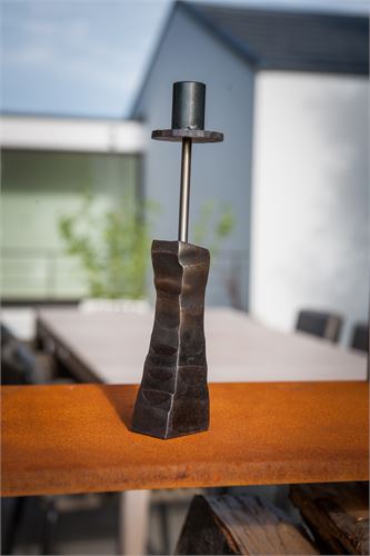 Kerzenständer 208565 aus Rohstahlblock – mit Lufthammer freiform handgeschmiedet, gewachst, für jede Umgebung geeignet.