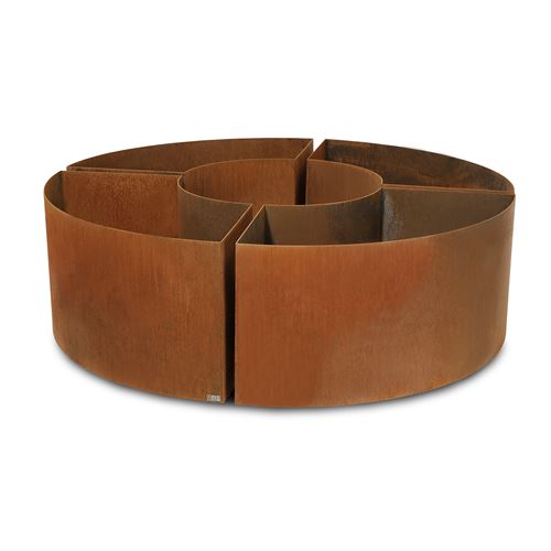 Die edel anmutende und robust gestaltete Metalltrockenmauer 1013 kann aufgrund seiner verarbeitungsfreundlichen viertelkreisigen Komponenten, die beliebig gedreht und kombiniert werden können, ohne großen Aufwand aufgebaut werden – sowohl in gerader als auch in geschwungener Form.