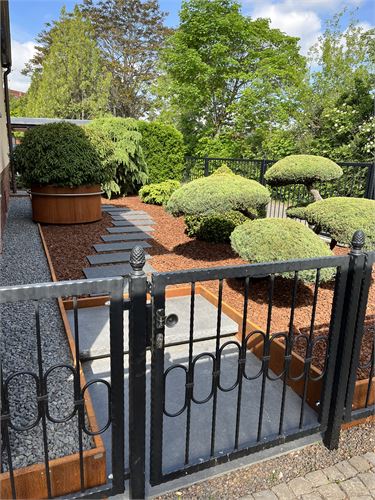 Die Edelstahl-Rohre verschweißen wir aufwändig per Hand und fixieren den fertigen Ring ohne sichtbare Schraubung über Edelstahlstreben am Pflanzgefäß. Dies wirkt, vor allem in Kombination mit Cortenstahl, edel und zeitlos.