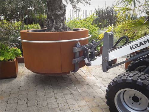 Der per Hand verschweißte Ring aus hochwertigen Edelstahl-Rohren lässt das Pflanzgefäß R502 optisch herausstechen und dient gleichzeitig als Anfahrschutz.