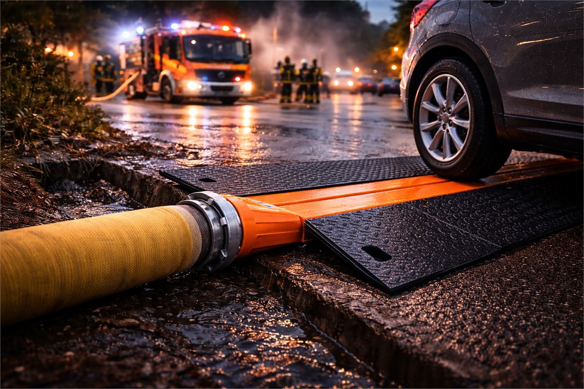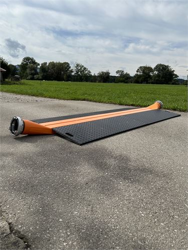 Die Aqua Pipe160 ist die erste Schlauchbrücke am Markt, die speziell für große DN150-Schläuche und F-Storz-Kupplungen entwickelt wurde. Während handelsübliche Lösungen lediglich für 75-mm-Schläuche ausgelegt sind, ermöglicht die Aqua Pipe160 den sicheren und reibungslosen Transport von Wasser und Schmutzwasser – selbst bei höchster Durchflusskapazität.