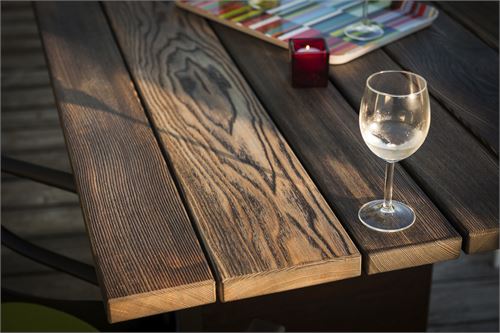 Sie können den Esstisch 705000 sowohl auf der Terrasse als auch im Haus aufstellen. Das rusitkale Material lässt, gepaart mit zeitlosem Design, sein Umfeld sofort moderner wirken.