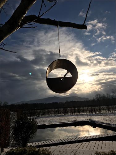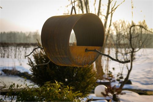 Vogelfutterhaus V165 aus Stahl – Oberfläche gerostet. Einfache Befestigung für die Vogelfutterstation mit Aufhängeöse Øca.220mm, Ohne Zubehör!